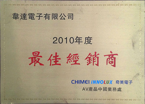 • 2010年度獲得最佳經銷商獎